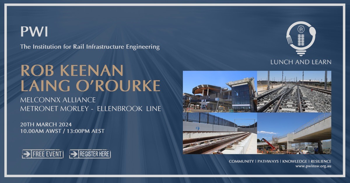 We are thrilled to announce the first-ever PWI Lunch and Learn session, an innovative platform where learning and lunching come together. Kicking off this exciting series, we are ecstatic to have Laing O’Rourke present their work on the METRONET Rail project. This session is a unique opportunity to delve into the intricacies of one of Perth’s most ambitious infrastructure projects, setting the stage for continuous learning and professional growth.