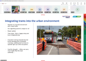 Yarra TramsDianne Banks, Head of Engineering, Civil & Structural Systems, Yarra Trams. She is the State Chair for PWI Victoria, and PWI Fellow. Dianne is the technical authority and subject matter expert, sitting on many ARISO / RIBBS development groups. She is experienced in roads, heavy rail and light rail and a strong advocate for a systems approach, integrating the interface of roads and rail to improve passenger, rail safety and accessibility to the light rail network to deliver a unified system.