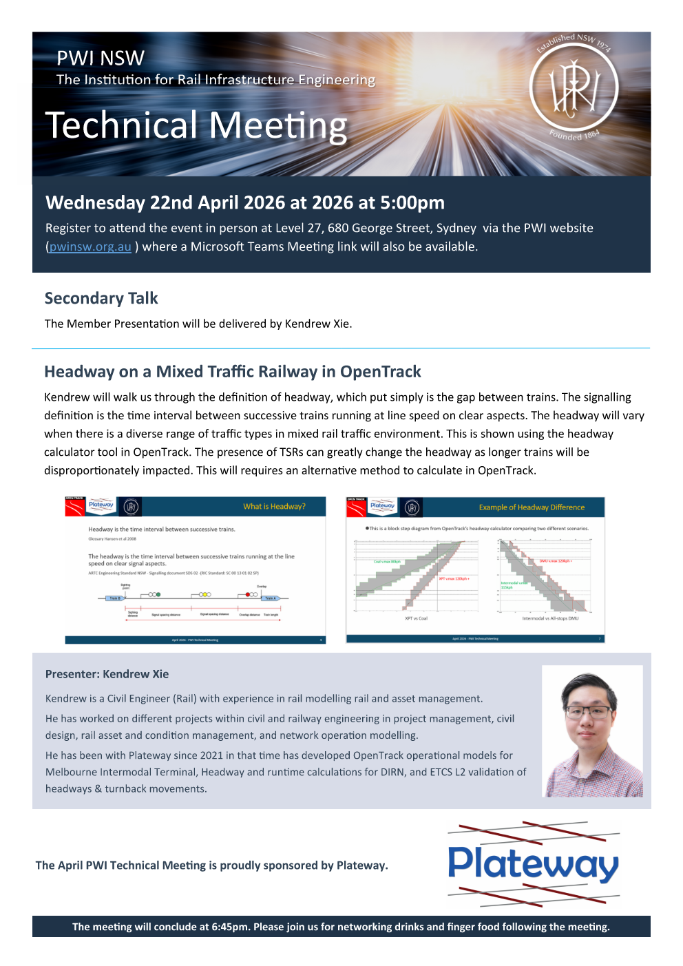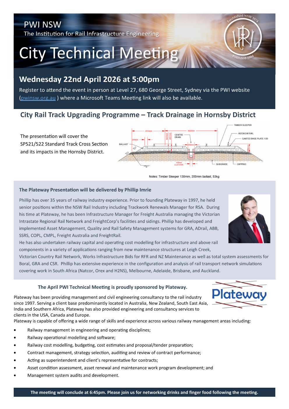 PWI NSW holds five Technical-Networking Meetings per year to provide members with a technical focus, enhance knowledge sharing and encourage regular networking amongst members.