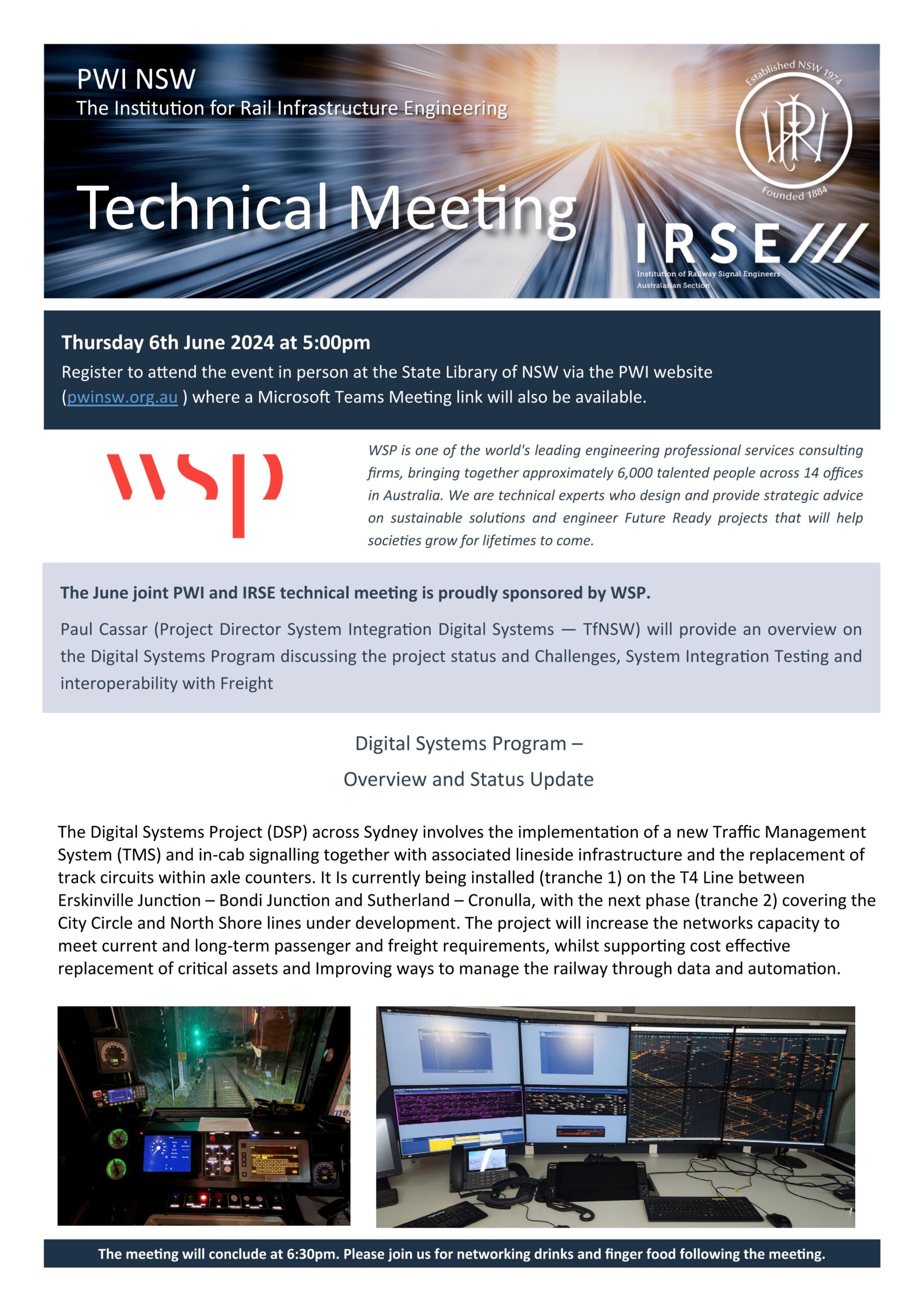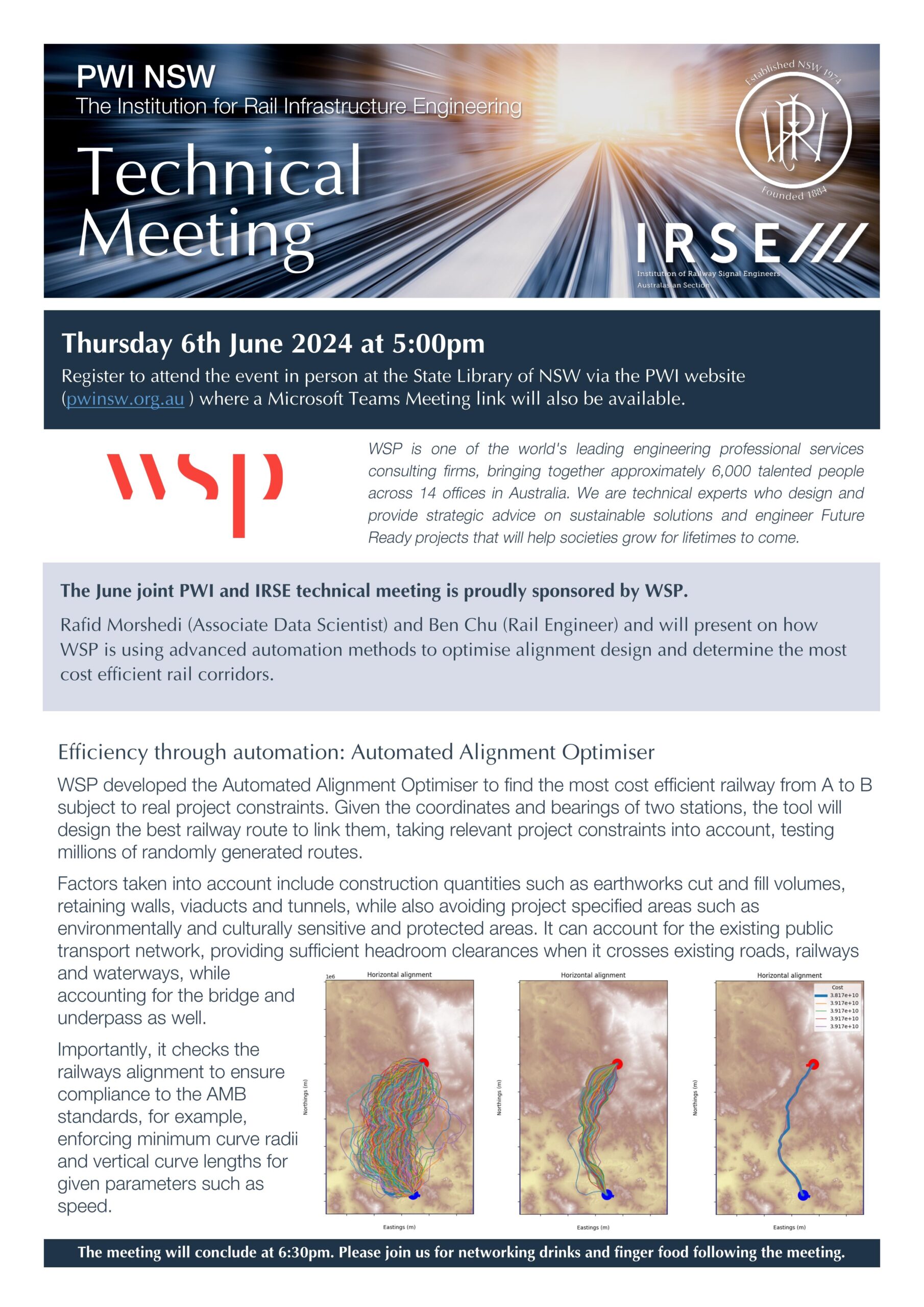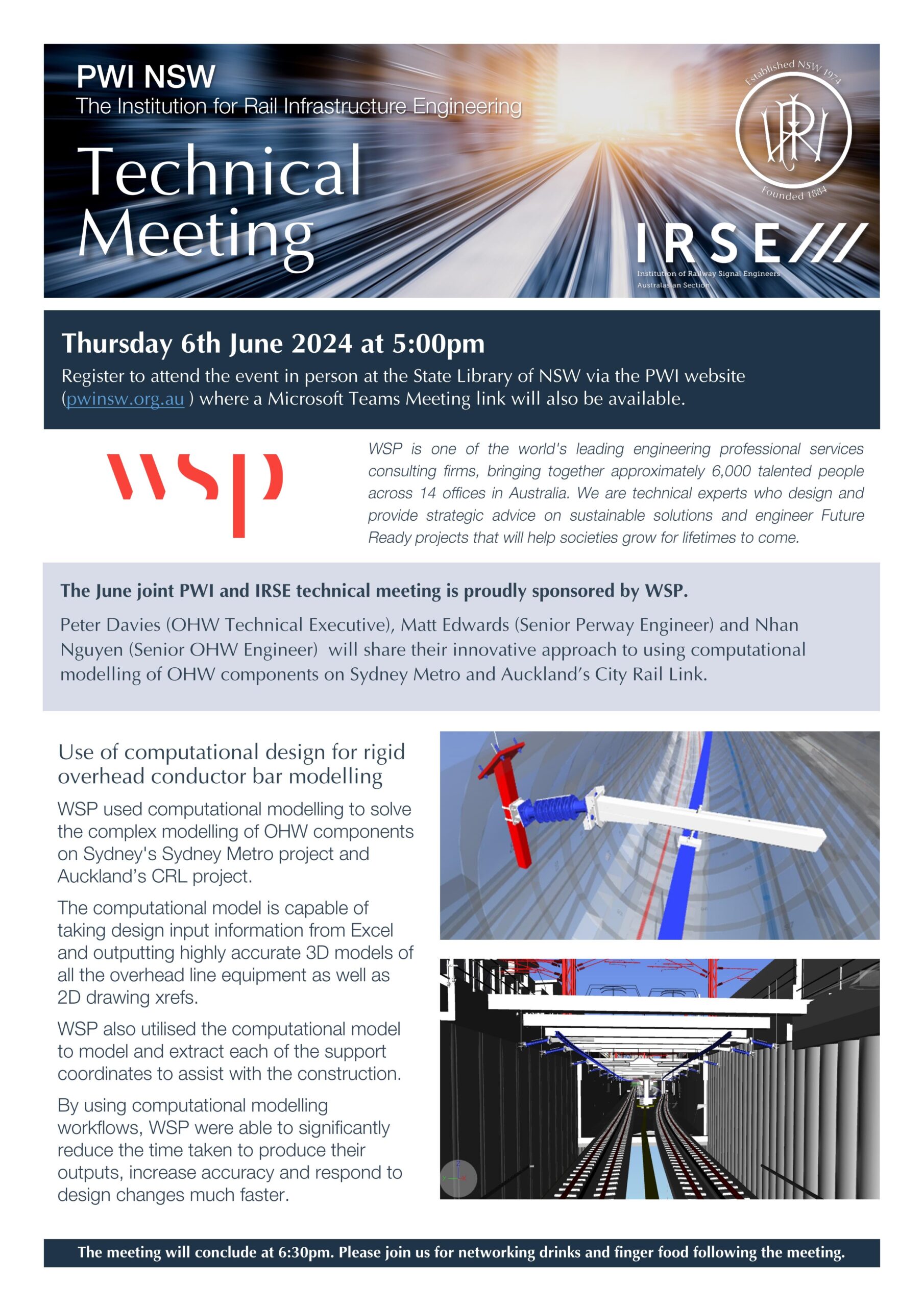 PWI NSW holds five Technical-Networking Meetings per year to provide members with a technical focus, enhance knowledge sharing and encourage regular networking amongst members.