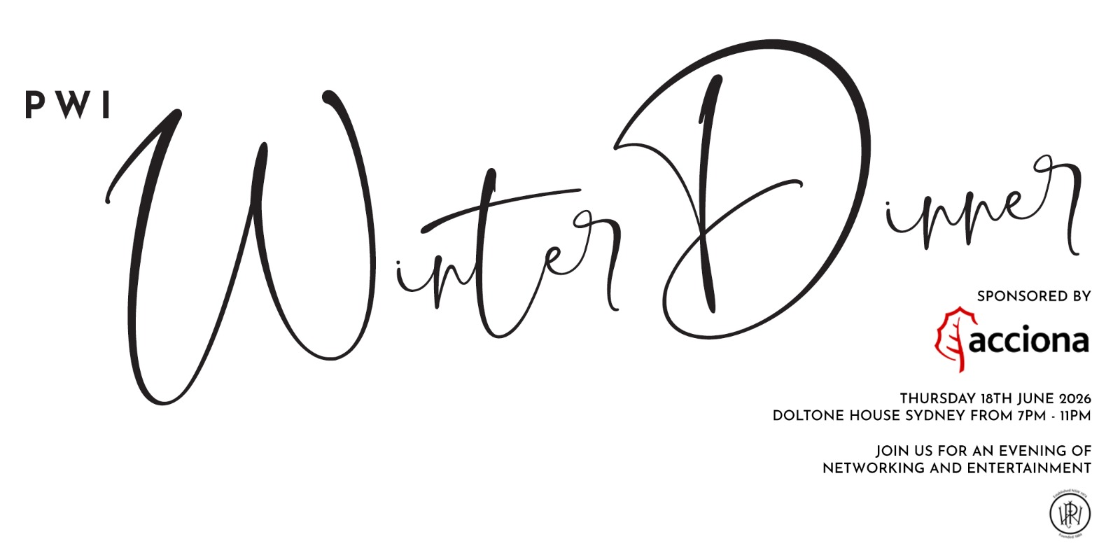 The Permanent Way Institution of NSW invites you to the 2026 Winter Dinner, proudly sponsored by Acciona.