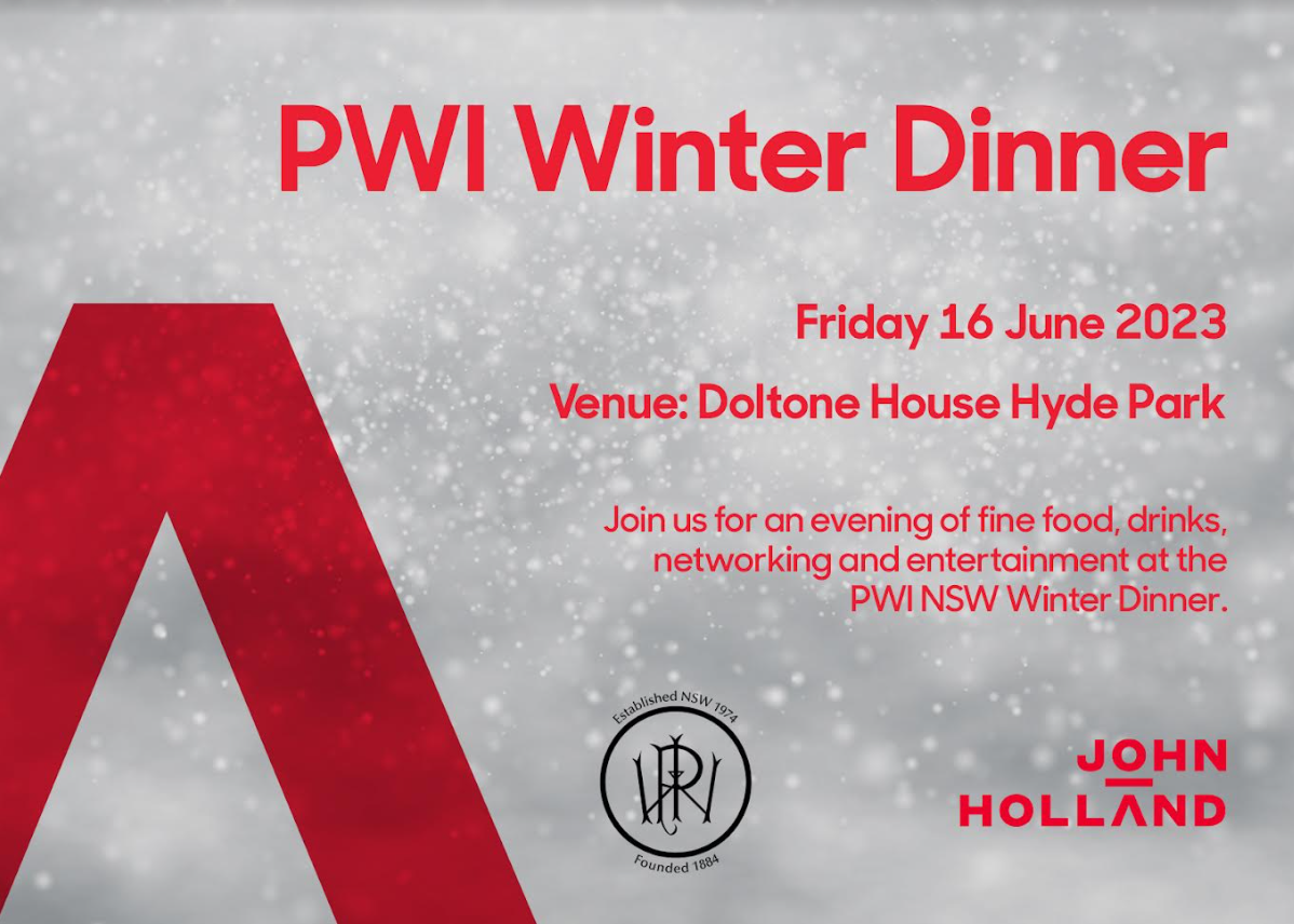 The Permanent Way Institution of NSW invites you to the Winter Dinner, proudly sponsored by John Holland.